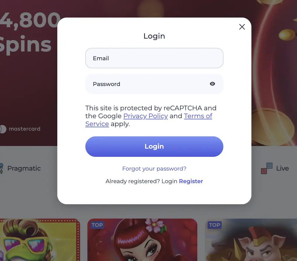 LuckyStart Casino Login Process