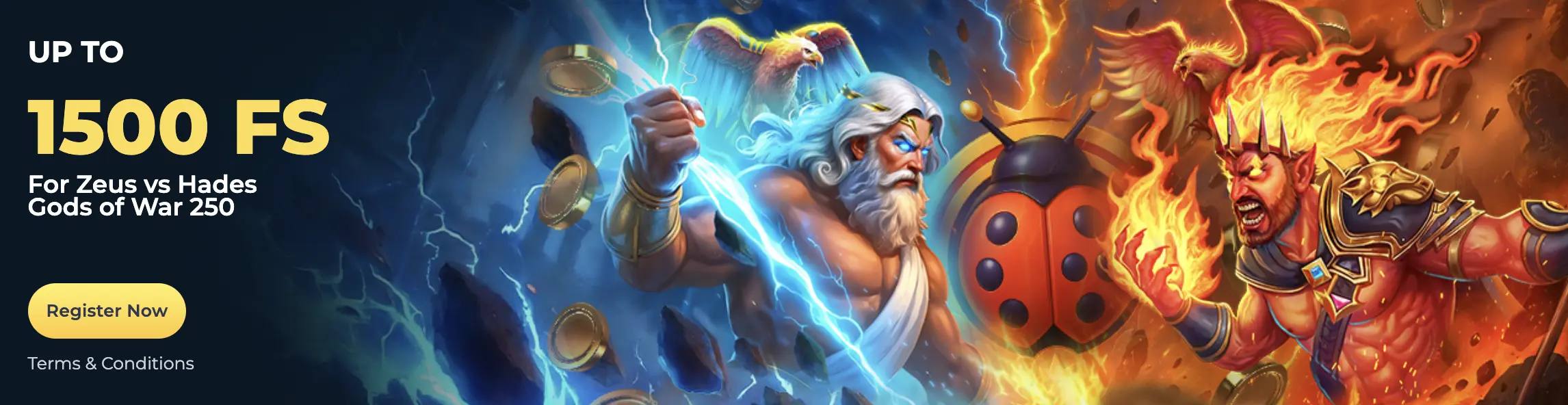 However, our Games of the Week deals regularly rotate both our offers and featured games. If you load CA$30 today with the code WAR100, you’ll get 100 free spins for Zeus vs Hades – Gods of War 240, but if you apply the code WAR500 and deposit CA$150, you’ll get 500 FS instead.