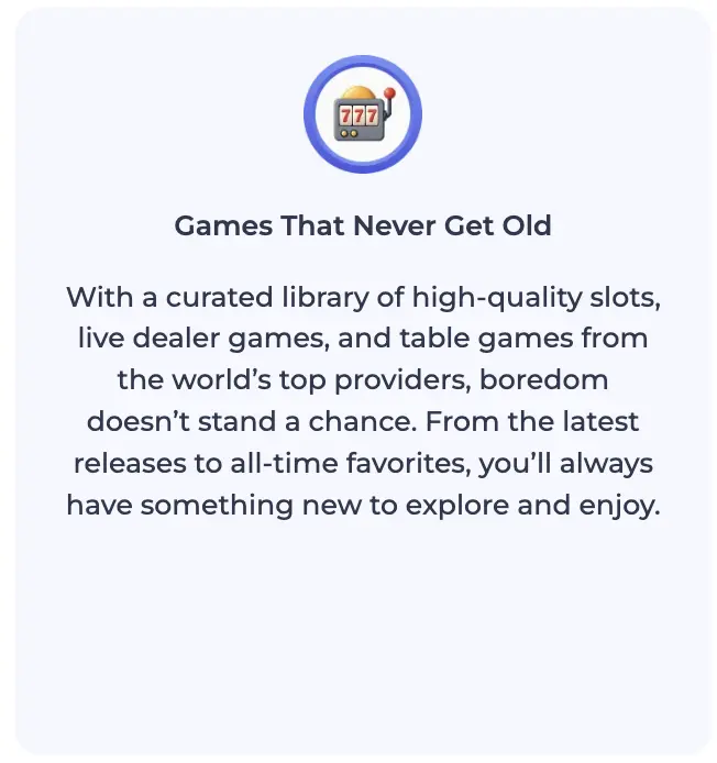 We have also partnered with dozens of highly respected software providers like Evoplay, GameBeat, Amatic, Betsoft, Playtech, Quickspin, Tom Horn and Ruby Play.